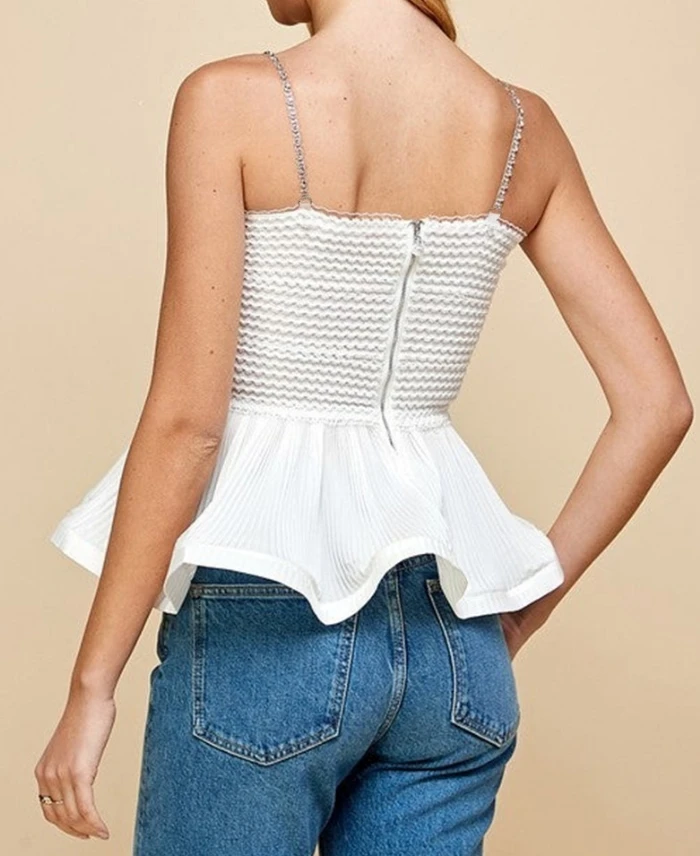 Top feminino 2024 verão moda strass babado bainha ruched casual querida pescoço liso sem mangas magro cami topo y2k roupas